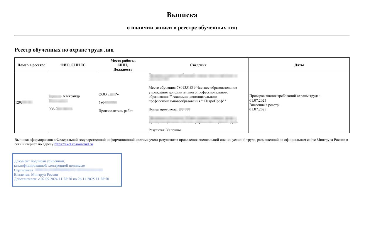 Кроме того, получение актуальных знаний в области охраны труда повышает конкурентоспособность специалистов на рынке труда, способствует их участию в крупных региональных проектах и программах модернизации производства.